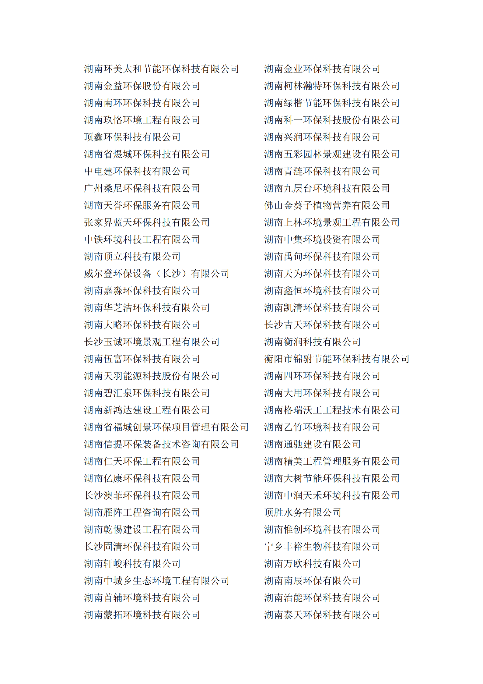 一、2021 年度湖南环境治理行业优秀单位(排名不分先后,共 123 个)