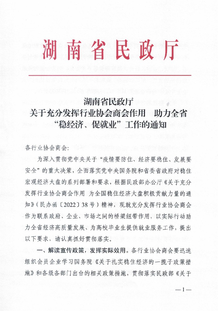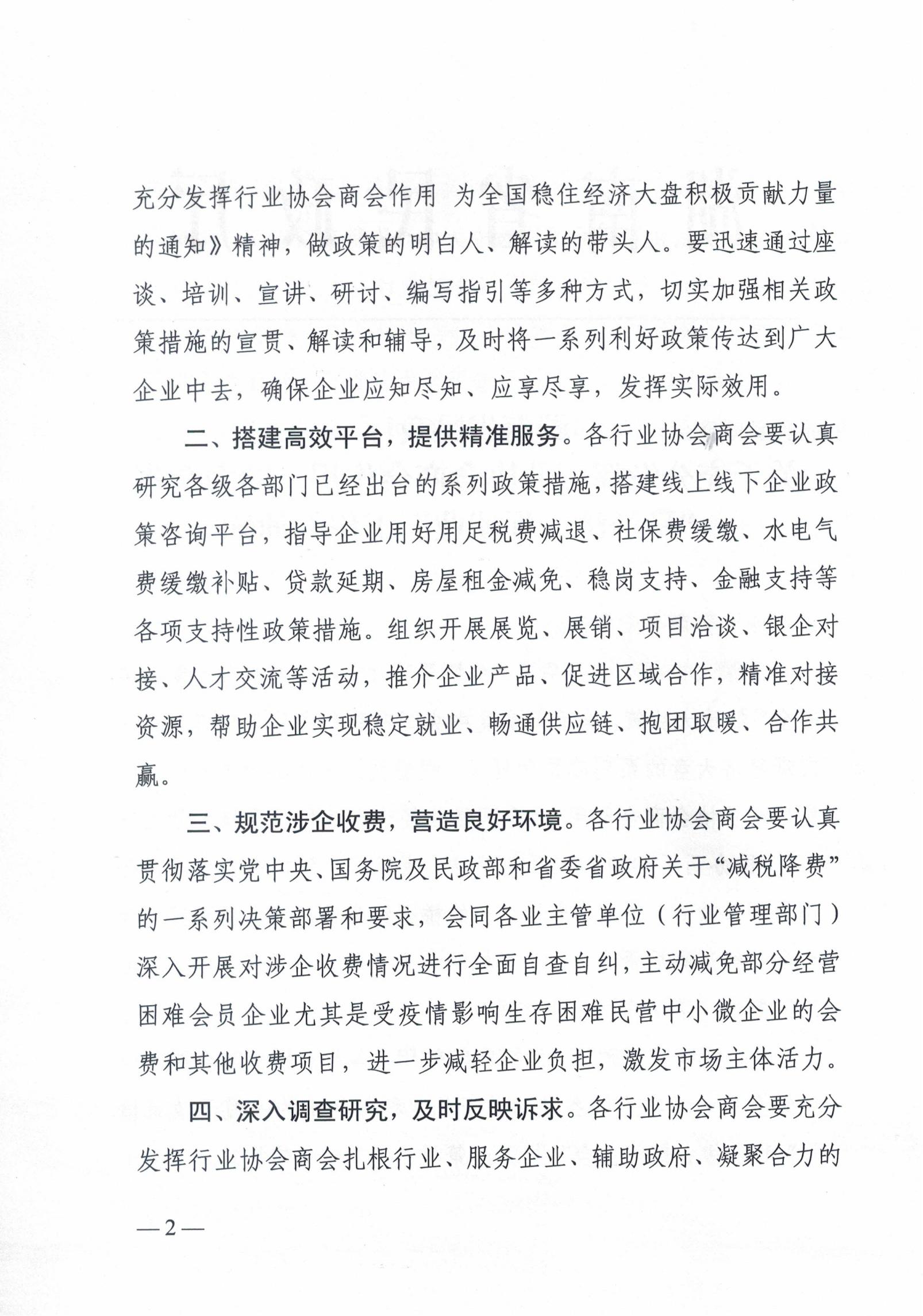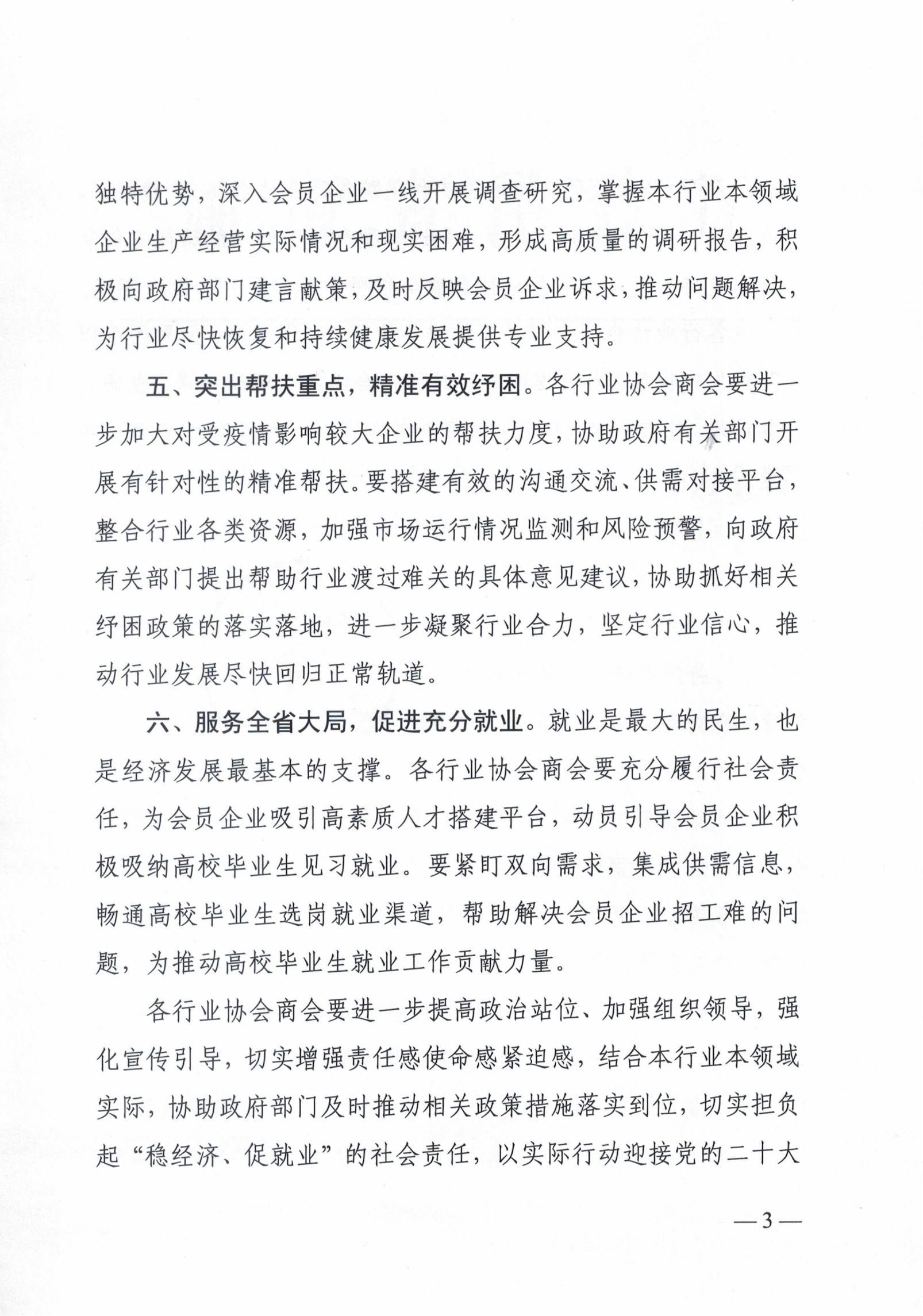 关于充分发挥行业协会商会作用助力全省“稳经济、促就业”工作的通知