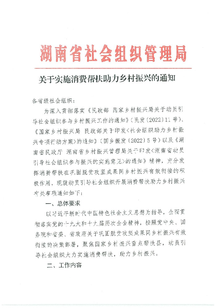 湖南省社会组织管理局关于实施消费帮扶助力乡村振兴的通知