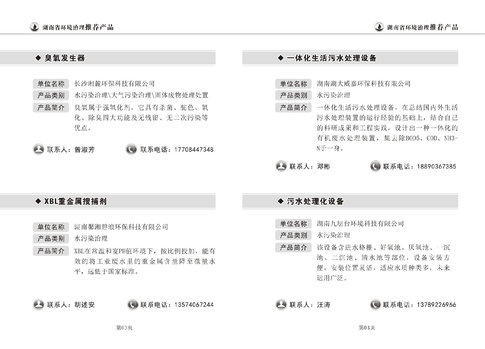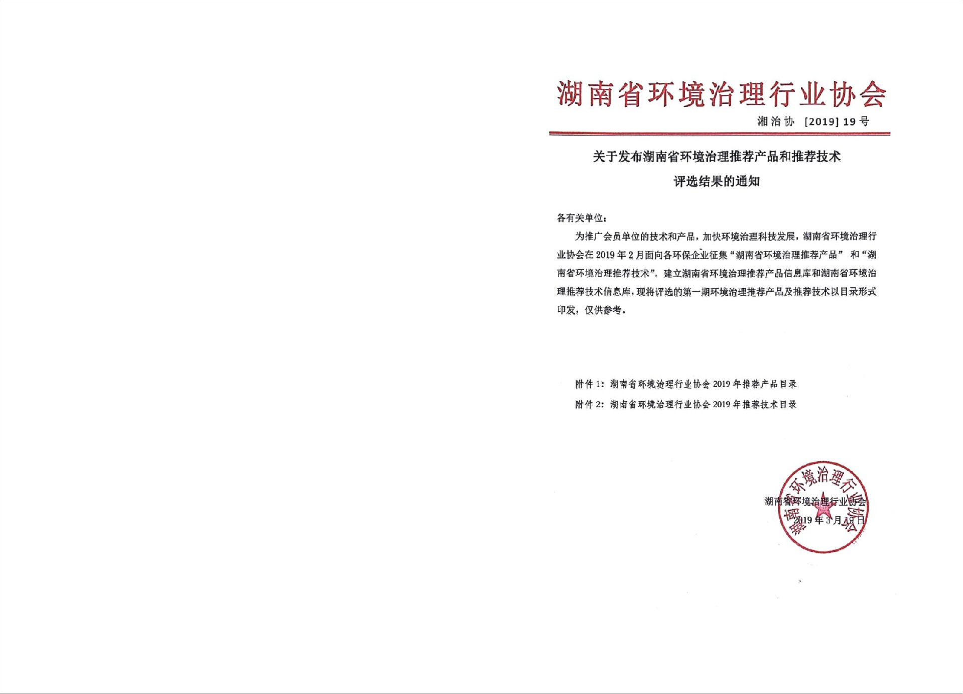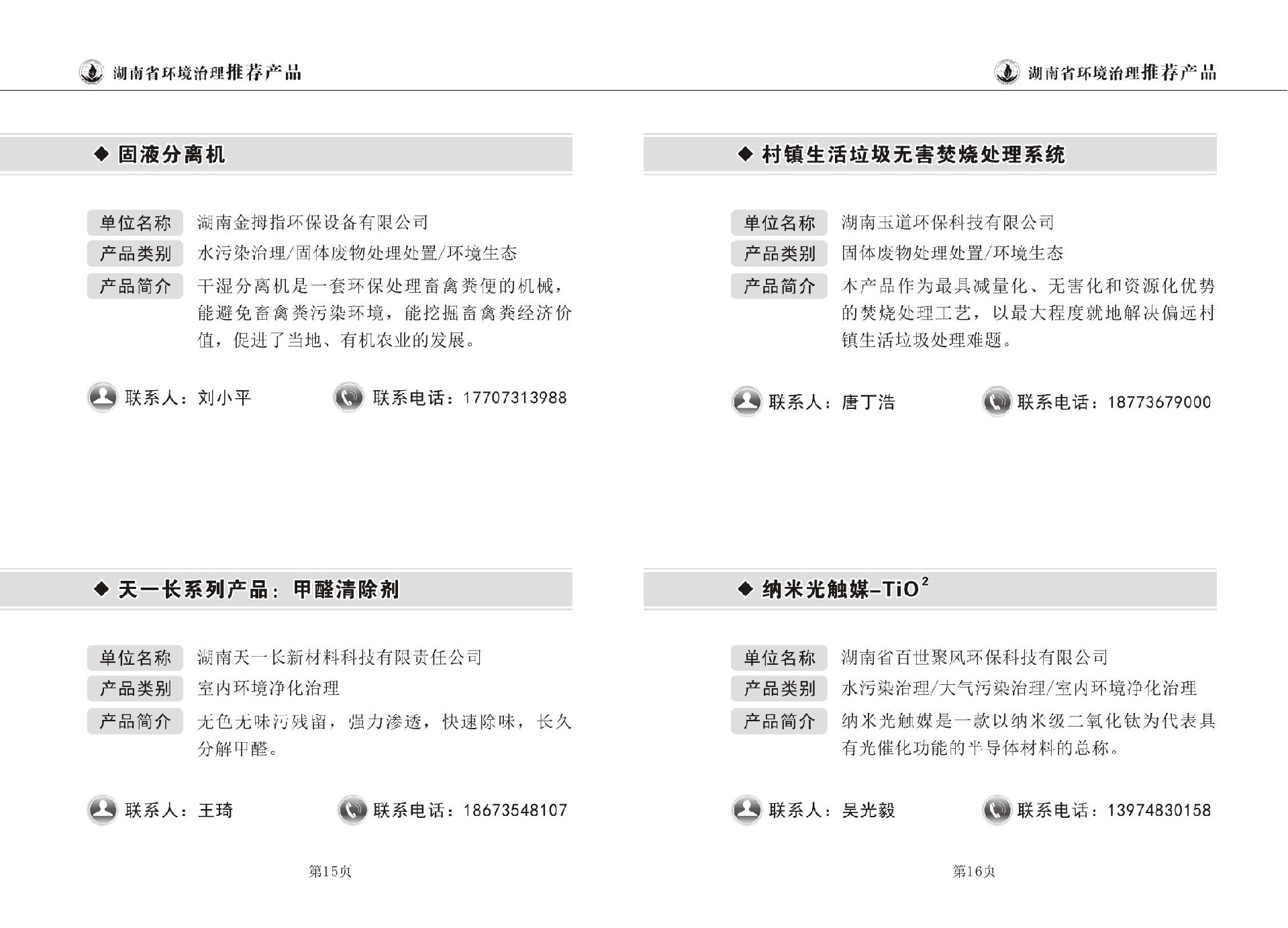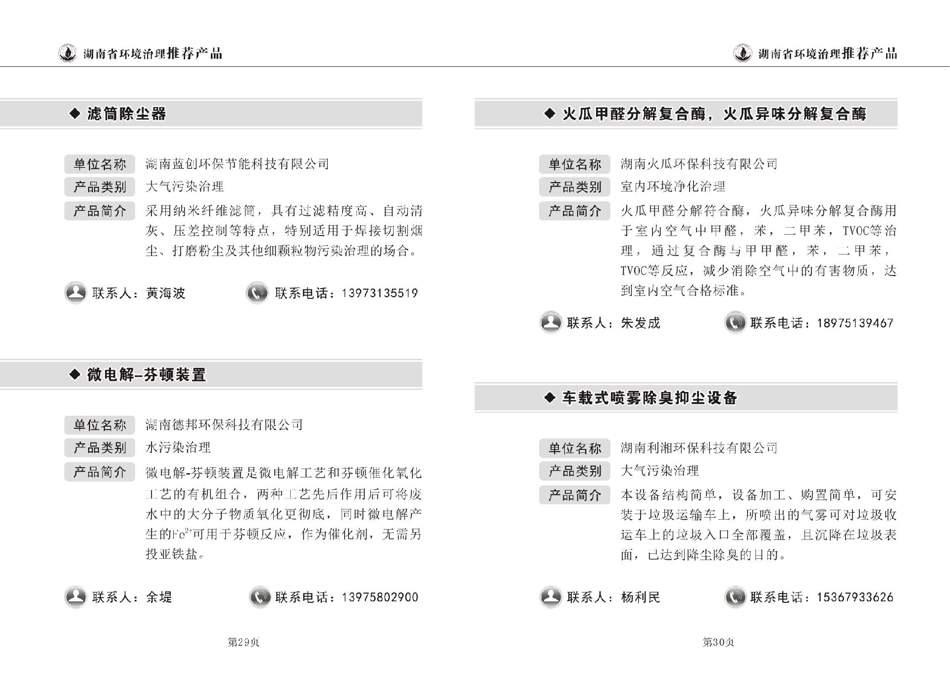 湖南省环境治理推荐产品目录(第一期)