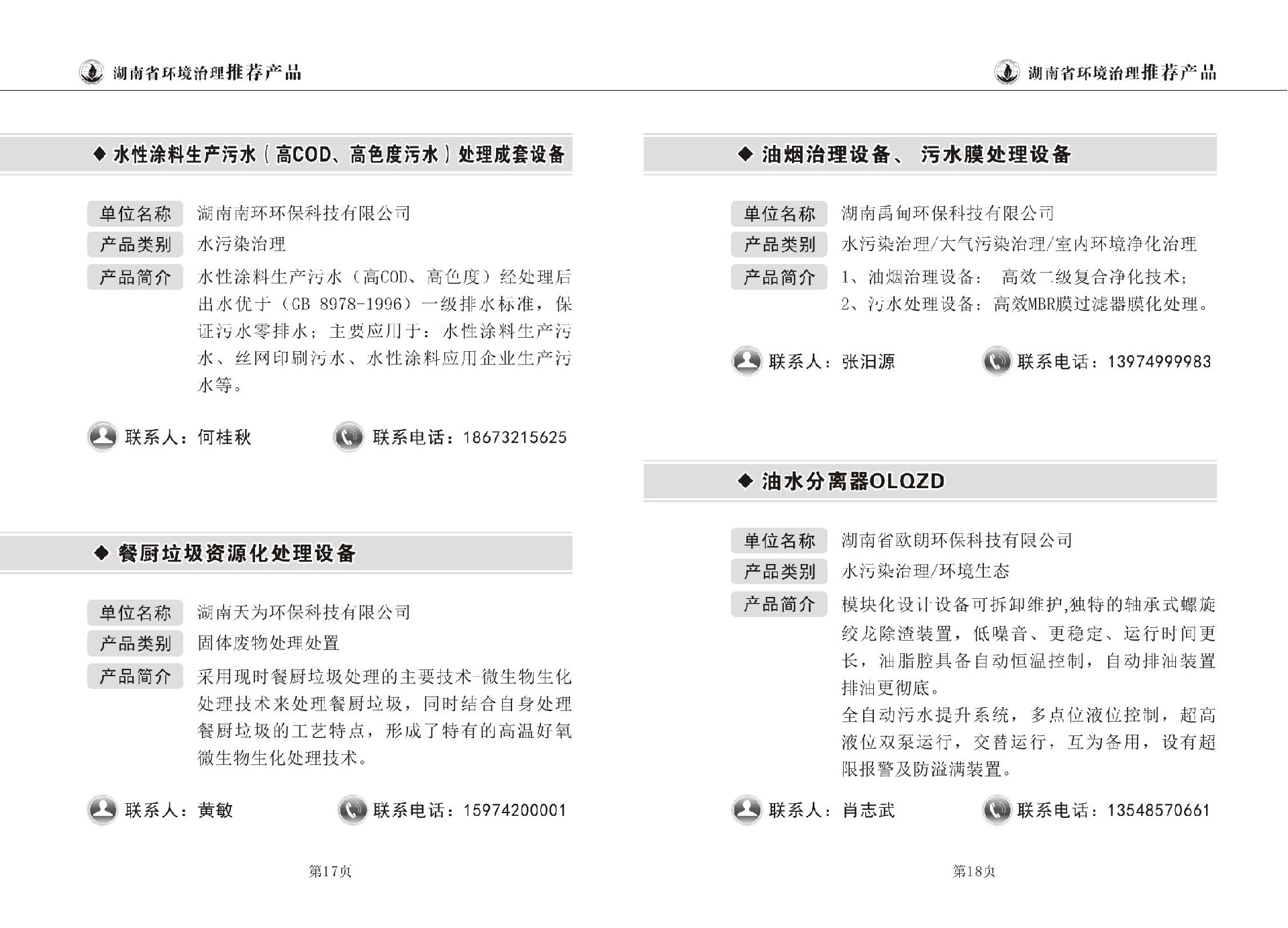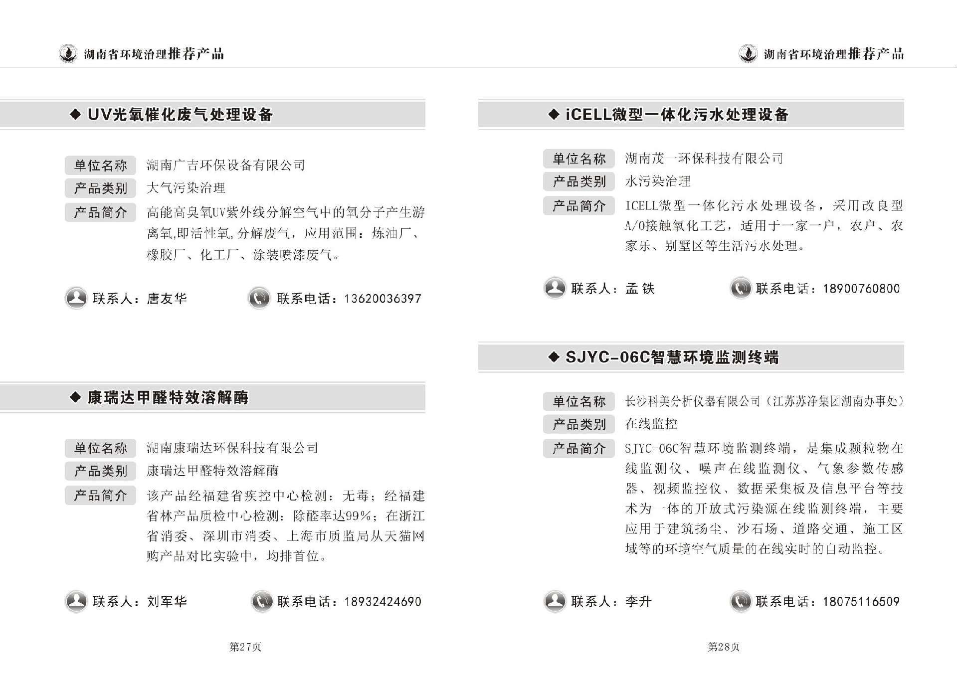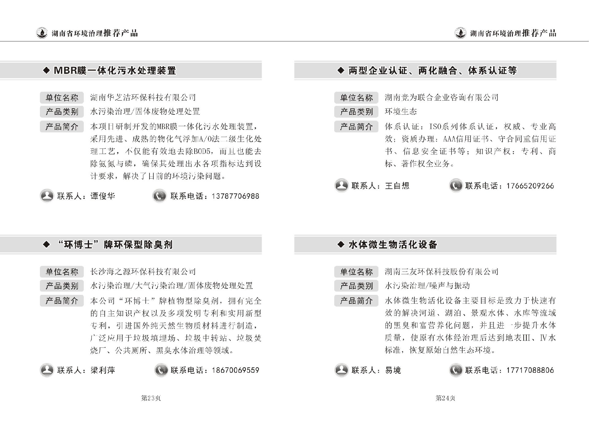 湖南省环境治理推荐产品目录(第一期)