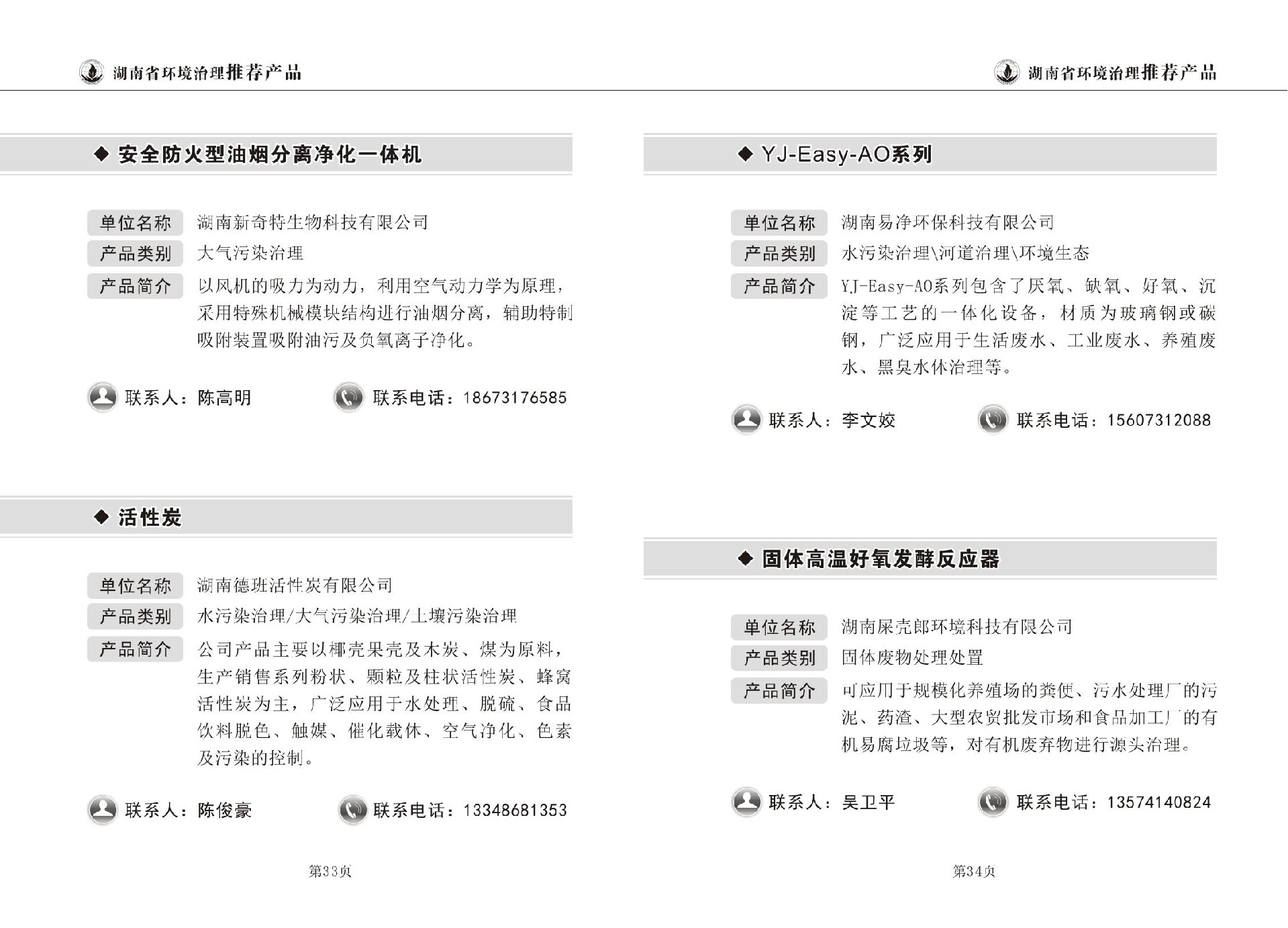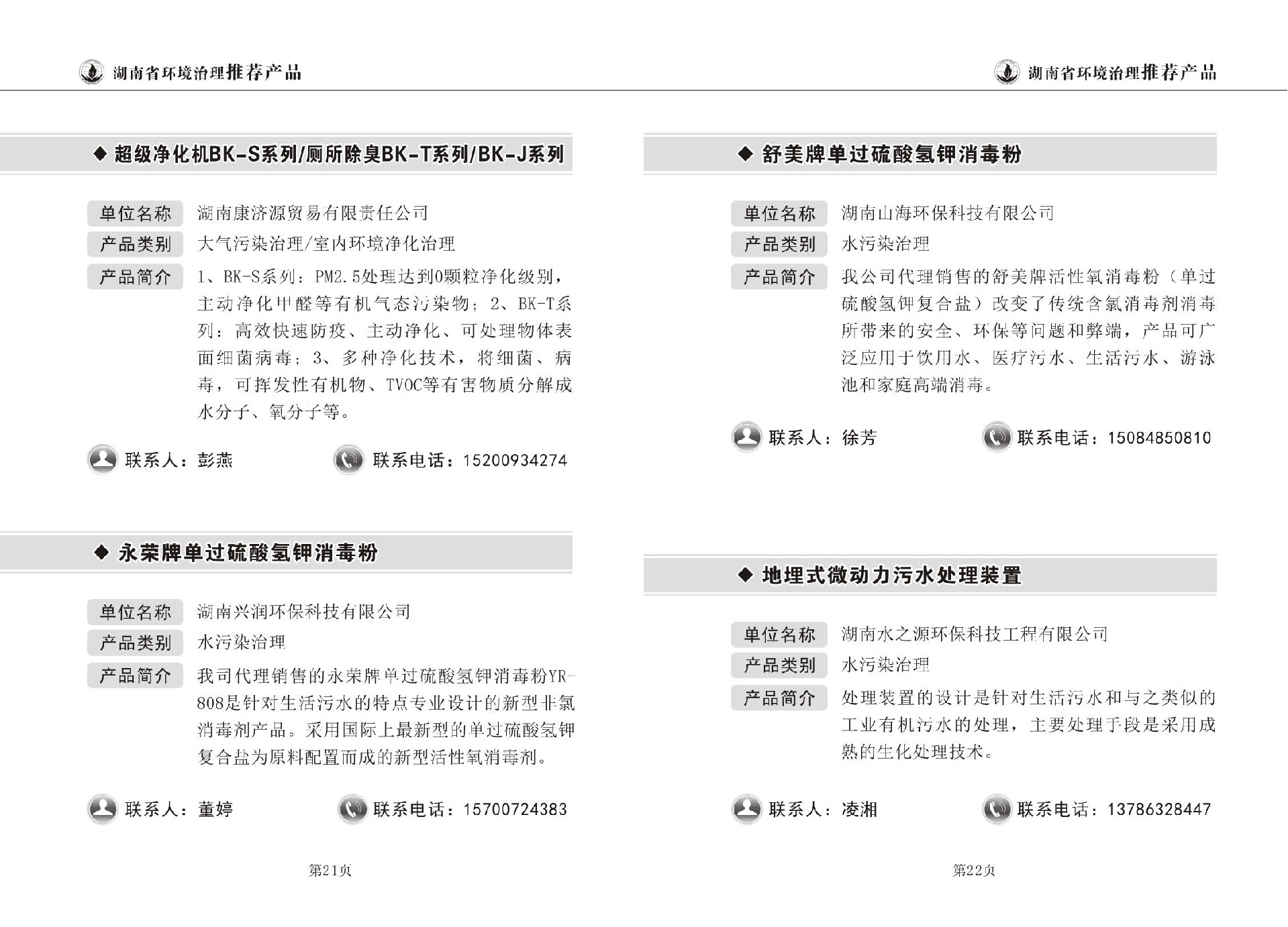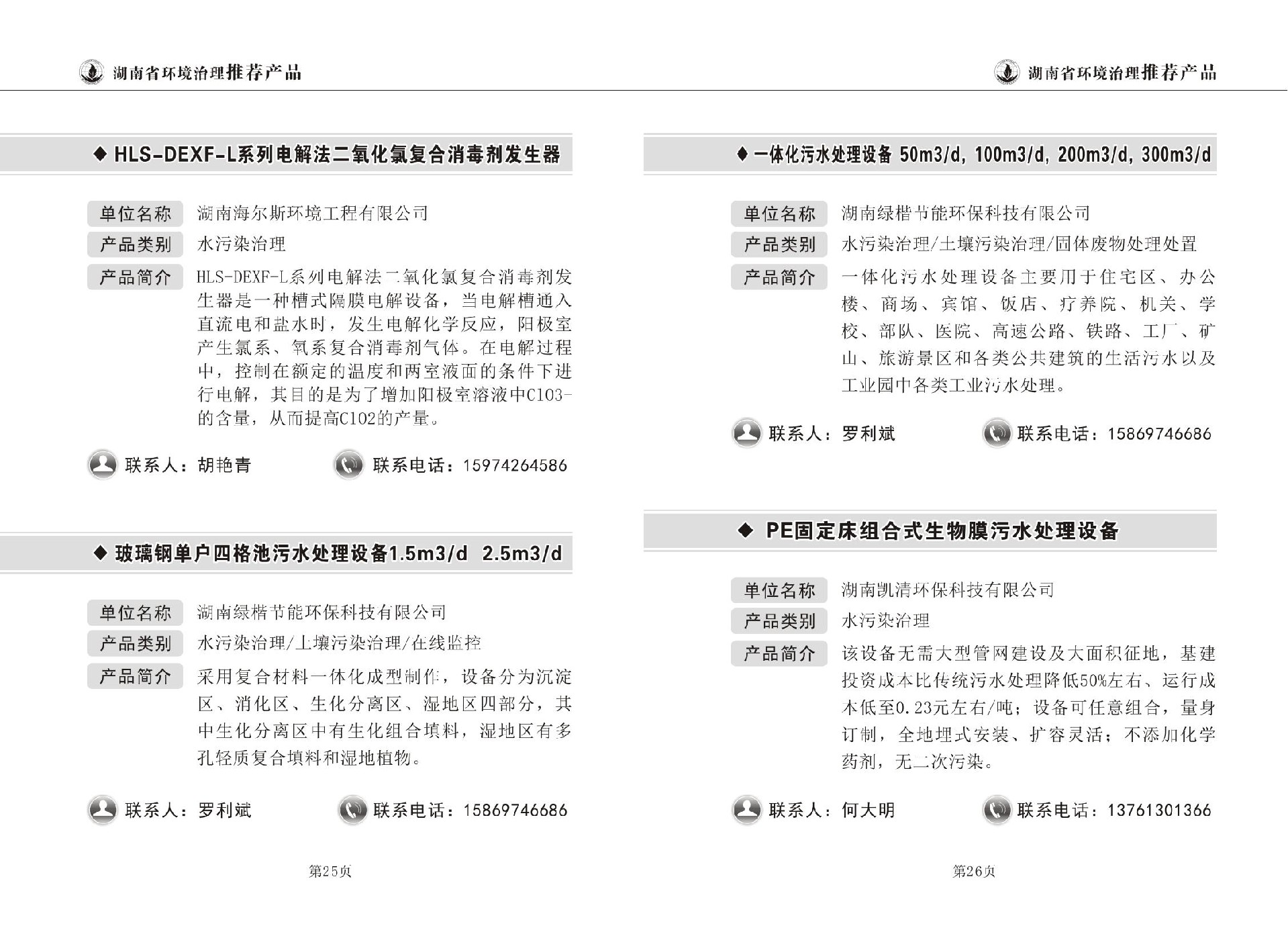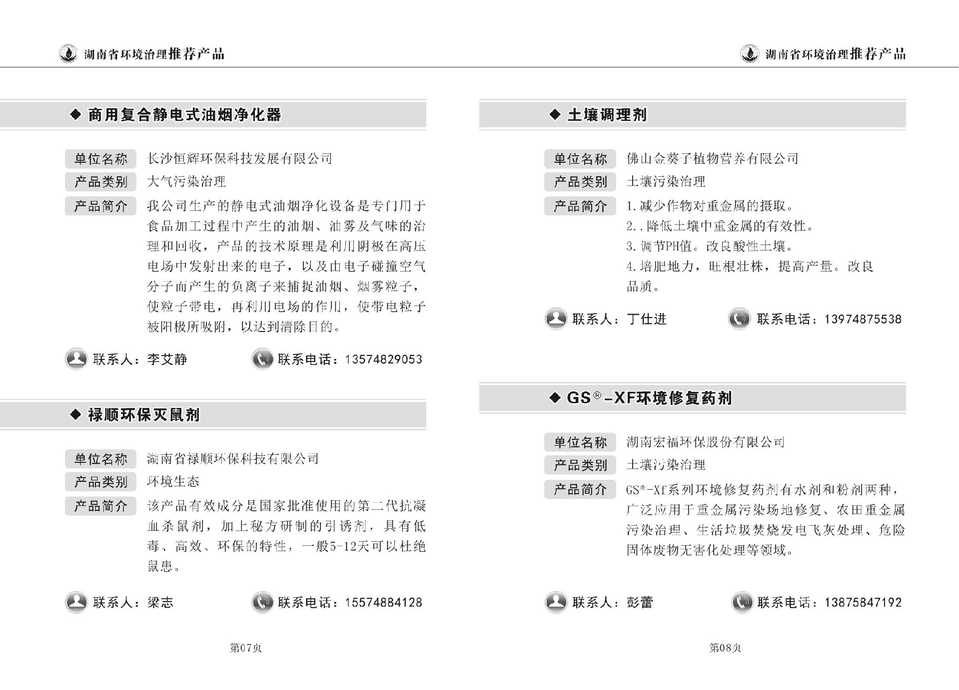 湖南省环境治理推荐产品目录(第一期)